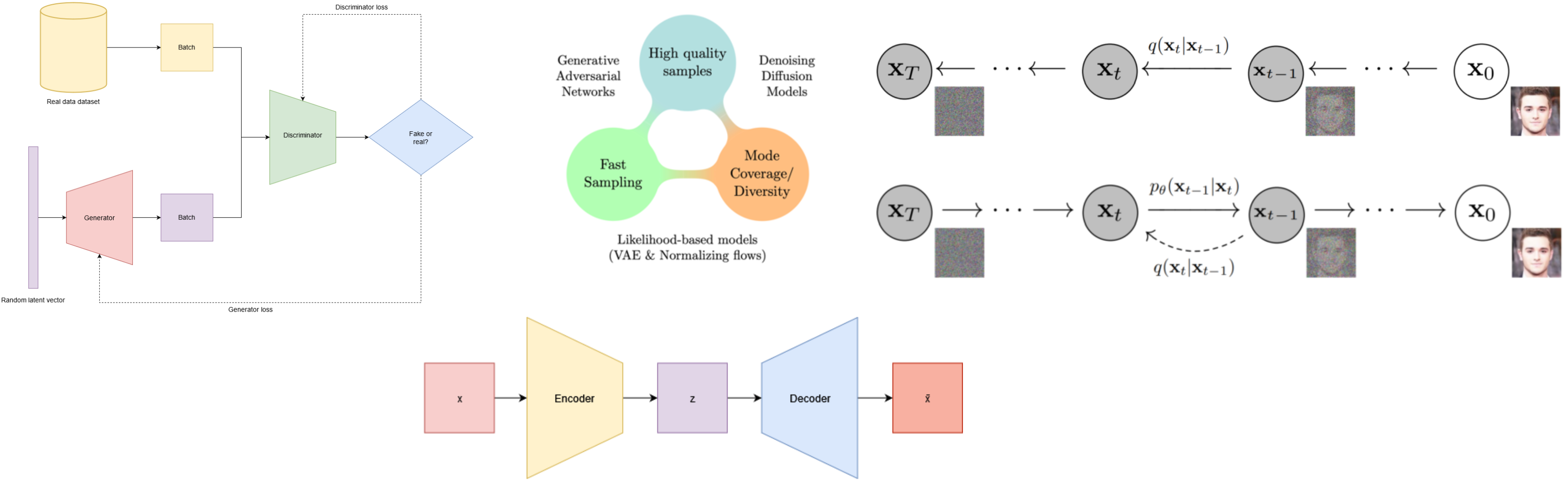 Most of the current deep generative learning models focus on high-quality definition, although all the requirements are highly important and key factors in a real environment. All of them have their advantages and drawbacks - and this is called the generative learning trilemma.